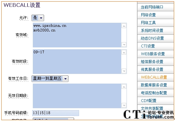 MVB2000系統(tǒng)中可以對WEBCALL的各種參數(shù)進(jìn)行設(shè)置,如下圖所示: