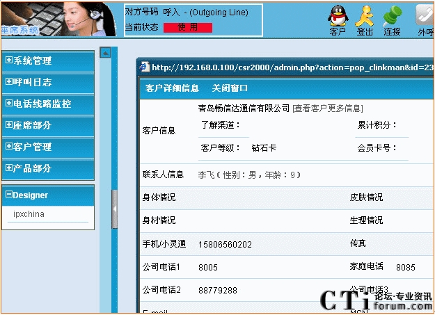 維護(hù)人員在局域網(wǎng)絡(luò)環(huán)境下,通過自己PC機(jī)的瀏覽器的頁面即可完成對呼叫中心系統(tǒng)的管理和維護(hù):