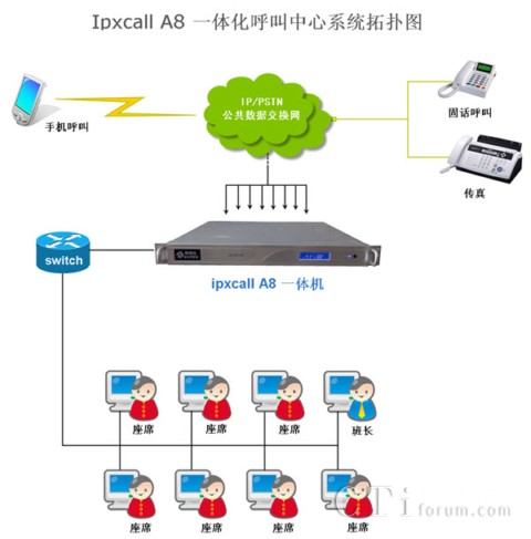 ipxcall A8呼叫中心融合IP-PBX和傳統(tǒng)呼叫中心功能于一體,采用先進(jìn)的計算機(jī)電話集成技術(shù),結(jié)合客戶的當(dāng)前業(yè)務(wù)和未來業(yè)務(wù)發(fā)展的實際情況,協(xié)助用戶快速建立一個功能全、易使用、易維護(hù)的一體化呼叫中心。