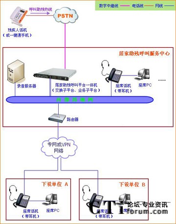居家助殘呼叫系統(tǒng)平臺的網(wǎng)絡架構如圖所示: