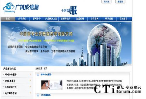 深圳市廣域成信息咨詢有限公司成立于2002年,是專業(yè)的CRM及呼叫中心外包服務(wù)提供商,8年的行業(yè)經(jīng)驗,致力于為我們的客戶提供專業(yè)數(shù)據(jù)庫營銷解決方案,包括呼叫中心外包、客服外包、電話營銷、手機廣告、DM直郵、品牌推廣、電子郵件服務(wù)等。