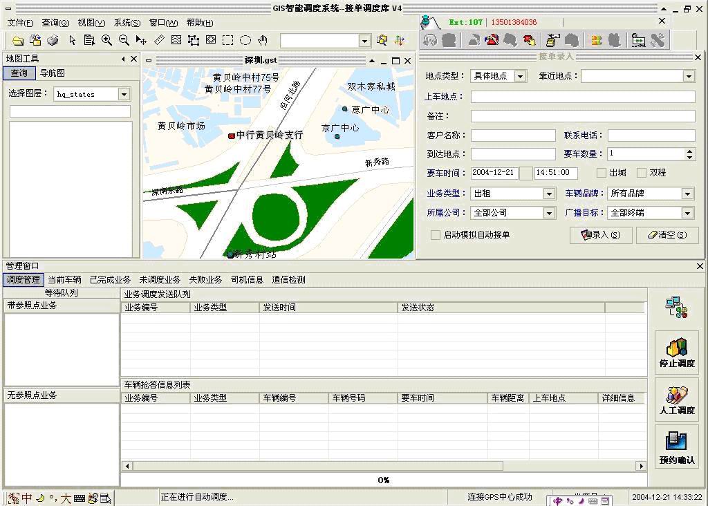 沈陽(yáng)車(chē)輛調(diào)度系統(tǒng)即是采用非圖形化控件與GPS系統(tǒng)進(jìn)行結(jié)合的。界面如圖: