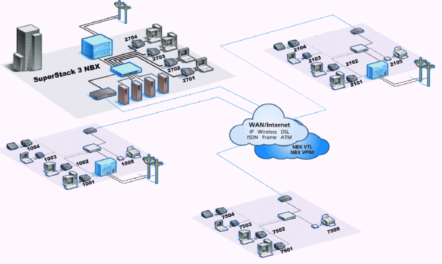 內(nèi)部兩網(wǎng)合一:管理、維護、升級方便靈活NBX網(wǎng)絡(luò)呼叫中心的核心是3Com公司的NBX網(wǎng)絡(luò)電話交換機,它具有PBX的功能,支持多種外線接入方式,呼入的語音信號轉(zhuǎn)換為數(shù)據(jù)包,在局域網(wǎng)內(nèi)部傳輸,實現(xiàn)局域網(wǎng)內(nèi)部語音、數(shù)據(jù)的統(tǒng)一。