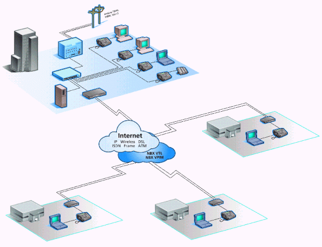 注:企業(yè)架設(shè)NBX通訊系統(tǒng)后,實(shí)現(xiàn)SOHO辦公只需要接入Internet架設(shè)VPN網(wǎng)絡(luò),員工可通過(guò)小區(qū)寬帶接入或ADSL接入即可實(shí)現(xiàn)內(nèi)部通訊就像在企業(yè)內(nèi)部辦公一樣通訊不受任何限制。客戶(hù)來(lái)電時(shí)只需撥打分機(jī)號(hào),無(wú)論員工在任何地點(diǎn)都可接聽(tīng)來(lái)電。企業(yè)可以通過(guò)TCA(通訊助理)軟件給員工發(fā)送公告、組建電話(huà)會(huì)議、短信通知等應(yīng)用。