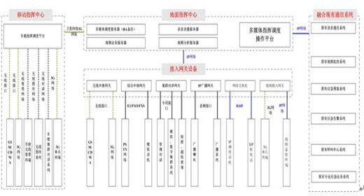 各個(gè)部門除了各自去處理相應(yīng)職能的問(wèn)題,還需要接受政府相關(guān)單位的整體指揮調(diào)度,并回傳相應(yīng)的信息。這就需要一個(gè)容納和對(duì)接軟硬件系統(tǒng)、網(wǎng)絡(luò)系統(tǒng)、各種對(duì)講頻段、不同集群系統(tǒng)、不同標(biāo)準(zhǔn)的通信信號(hào)的智能化的融合通信應(yīng)急平臺(tái)。