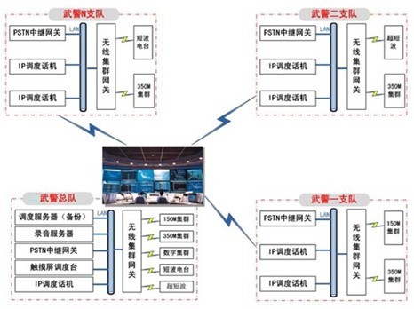 1)融合現(xiàn)有通信終端:可把系統(tǒng)內(nèi)部現(xiàn)有各種常規(guī)對講、數(shù)字集群、短波/超短波電臺等通信系統(tǒng)融合到多媒體調(diào)度平臺里互聯(lián)互通,由武警總隊調(diào)度臺進(jìn)行統(tǒng)一指揮調(diào)度。