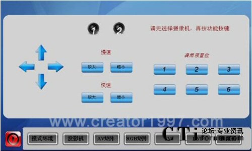 CTI論壇(ctiforum)1月25日消息(記者 潘婷):在業(yè)務不斷攀升的同時,廣東移動公司對培訓直播室也進行了進一步的提升,采用了CREATOR快捷的中控系統(tǒng)和矩陣系列產(chǎn)品,其中,中控設備是CREATOR快捷PGMII型高端中央控制可編程主機,通過無線真彩觸摸屏ST-7600C作為控制媒介,主要控制了矩陣、投影機、DVD、攝像機等外圍設備,對整個會議室實現(xiàn)有線全智能人性化控制。通過對矩陣進行控制切換信道,實現(xiàn)了多個電腦會議信號的快速轉(zhuǎn)換和AV信號的切換。矩陣采用了8*4的RGB矩陣和8*4的AV矩陣,可以方便的對電腦信號和AV信號進行簡單的切換。通過紅外發(fā)射棒對DVD和攝像機進行控制,體現(xiàn)了多媒體控制系統(tǒng)的優(yōu)越性,本系統(tǒng)還通過攝像跟蹤的原理來實現(xiàn)教室直播的錄制。