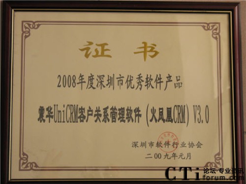 火鳳凰CRM軟件獲“2008年度深圳市優(yōu)秀軟件產(chǎn)品”稱號(hào)