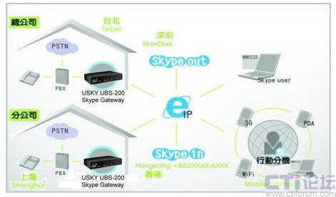 本公司新推出USKY UBS-400(4 ports)/UBS-200(2 ports) Skype Gateway,是專為企業(yè)用戶所設(shè)計(jì)的外接式Skype網(wǎng)關(guān)。只須將原有電話交換機(jī)(PBX)連接上我們的USKY UBS-400/UBS-200,企業(yè)用戶無(wú)需改變撥號(hào)方式,便可輕松透過(guò)桌上電話撥打或接聽Skype電話,將傳統(tǒng)電話提升為網(wǎng)絡(luò)電話(VoIP),既簡(jiǎn)單又方便!有效幫助企業(yè)用戶增加通話效率,更能大幅減少通話費(fèi)。
