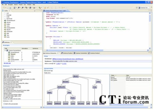 這里強調的Eclipse插件,除了本身作為優(yōu)秀工具,還提供了附加于Eclipse工作臺內(nèi)的順暢互操作性:你可以一邊看著對應呼叫者輸入的對話流程,一邊檢查和完成語音識別語法;你也可以一邊構建連接后臺的Web服務代碼,一邊通過簡單地拖放來調整應用邏輯。開發(fā)者首次擁有了對所有應用方面的同時控制,無須在不同IDE之間進行切換,或者在選擇單一環(huán)境時在特性上的折衷。