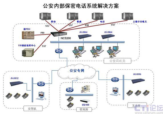 為了滿足當(dāng)前公安工作日益發(fā)展的通信需求,采用數(shù)據(jù)、語音、視頻集成傳輸?shù)囊惑w化網(wǎng)絡(luò)系統(tǒng),能在安全、可靠、快速運(yùn)行的同時(shí)節(jié)約費(fèi)用支出。在公安專網(wǎng)基礎(chǔ)上,增加保密電話系統(tǒng),實(shí)現(xiàn)各派出所、分局、上級公安機(jī)關(guān)之間通過內(nèi)部保密電話來通話,可以起到在全省范圍內(nèi)降低長途花費(fèi)、節(jié)省開支的作用,提高網(wǎng)絡(luò)利用率,加強(qiáng)有效溝通,快速處理各項(xiàng)警務(wù)任務(wù)。