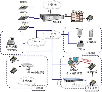 整個(gè)系統(tǒng)內(nèi)部通過主流標(biāo)準(zhǔn)協(xié)議聯(lián)結(jié),支持與運(yùn)營(yíng)商IMS網(wǎng)絡(luò)的無縫對(duì)接。新增分支機(jī)構(gòu)只需增加NC5200系列IP-PBX或者IAD即可融入公司整個(gè)通信系統(tǒng)。
