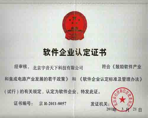 北京宇音天下公司順利通過“雙軟認證”