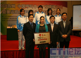 CTI論壇(ctiforum)04月14日消息: 日前,”蘇州 2009中國呼叫中心高峰論壇暨奧運(yùn)觀眾呼叫中心志愿者表彰大會”在蘇州工業(yè)園區(qū)召開,表彰在奧運(yùn)期間對奧運(yùn)呼叫中心作出突出貢獻(xiàn)的十三家志愿者選派單位及先進(jìn)個人。大會由第二十九屆奧林匹克運(yùn)動會組織委員會與中國信息化推進(jìn)聯(lián)盟客戶關(guān)系管理專業(yè)委員會共同主辦,蘇州工業(yè)園區(qū)、CCCS聯(lián)絡(luò)中心標(biāo)準(zhǔn)委員會、ICMI客戶管理學(xué)院(中國區(qū))共同承辦。