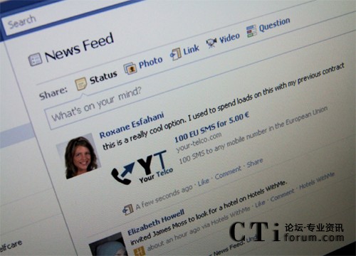 CTI論壇(ctiforum)11月30日消息(記者 張潔):諾基亞西門子通信推出一款全新 Facebook 應(yīng)用程序,運營商可利用該程序支持用戶自行管理其固定和移動電信服務(wù)。用戶通過該程序可查詢余額,瀏覽和購買特惠產(chǎn)品,以及訂購服務(wù)。此外,用戶還可以通過社交網(wǎng)絡(luò)分享其經(jīng)歷,并通過向朋友推薦服務(wù)獲得獎勵。該應(yīng)用程序旨在支持運營商以用戶青睞的網(wǎng)絡(luò)方式增進(jìn)互動,提高服務(wù)質(zhì)量。