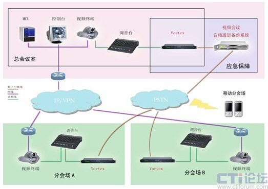 VORTEX 2241:3臺 放置于北京主會場。該設(shè)備可實現(xiàn)視頻會議的語音同備份語音無縫結(jié)合,確保兩路聲音切換時,與會者不會察覺;顯著減少發(fā)至其它站點的聲音中的環(huán)境噪聲,從而消除麥克風和線路輸入和電話接聽音頻的環(huán)境噪聲,提高現(xiàn)有會議裝置的整體音質(zhì)。