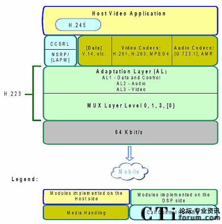 中間層是H.223協(xié)議,負責的媒體混合表格的交換(Multiplex Table),H.223的處理一般是用硬件實現,典型的硬件處理芯片是Ti的6xxx視頻處理器。