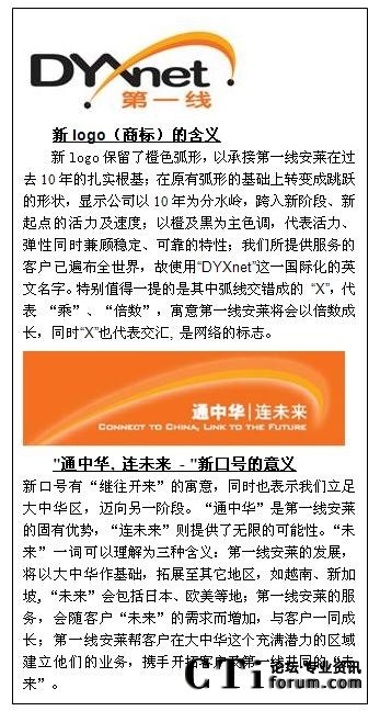 CTI論壇(ctiforum)08月20日消息: 知名網(wǎng)絡(luò)服務(wù)商第一線安萊,十年間憑借經(jīng)驗豐富的團(tuán)隊,靈活的服務(wù)、可靠的網(wǎng)絡(luò)系統(tǒng)等,遙遙領(lǐng)先于眾多競爭對手,傲然屹立于大中華地區(qū)。目前,正值第一線安萊十周年慶之際,全新的企業(yè)商標(biāo)和“通中華.連未來”的新口號也向大眾展示。公司提出將幫助客戶實現(xiàn)“立足大中華,拓展全世界”的愿景。