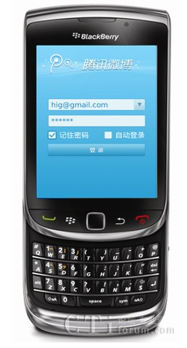 圖:通過BlackBerry Torch 9800登陸騰訊微博