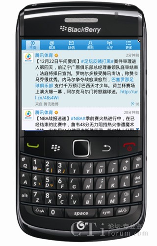 圖:通過BlackBerry Bold 9788登陸騰訊微博