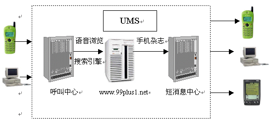 “99+1”統(tǒng)一消息網(wǎng)(以下簡(jiǎn)稱“99+1”)是基于統(tǒng)一消息服務(wù)(UMS)平臺(tái),應(yīng)用呼叫中心服務(wù)方式,針對(duì)移動(dòng)用戶,以“99+1”網(wǎng)站為中心服務(wù)渠道,融合了先進(jìn)的語(yǔ)音合成和語(yǔ)音識(shí)別技術(shù),充分實(shí)現(xiàn)了話音、數(shù)據(jù)、短消息等全方位服務(wù)方式的綜合信息服務(wù)網(wǎng)絡(luò)。