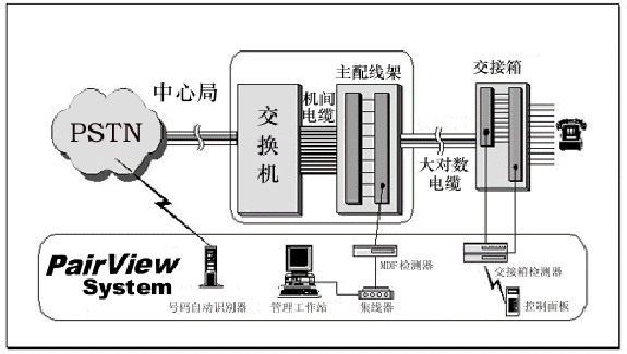 8. 可為電信公司帶來良好的收益和長遠的經(jīng)濟利益 本地環(huán)路測試系統(tǒng)(PairView)的構成如下: