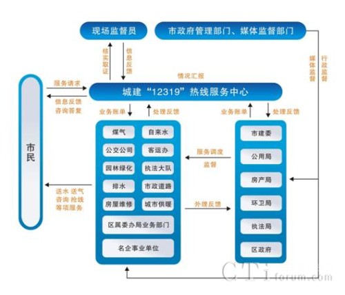 - 各城管系統(tǒng)都設(shè)立專門機(jī)構(gòu)直接與熱線中心聯(lián)系,即時(shí)處理服務(wù)中心轉(zhuǎn)來(lái)的各類問(wèn)題,實(shí)現(xiàn)“市民→熱線中心→責(zé)任單位→市民”的閉路循環(huán),做到受理及時(shí)、反應(yīng)快速、處理到位, 使 12319 熱線成為密切政府與群眾關(guān)系、 創(chuàng)建行業(yè)服務(wù)品牌的一項(xiàng)重要舉措。