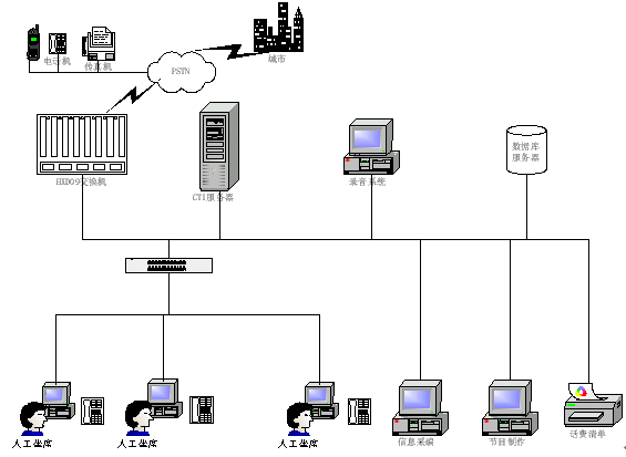 6)網(wǎng)絡(luò)設(shè)備:包括以太網(wǎng)交換機(jī),坐席電話轉(zhuǎn)接設(shè)備等;