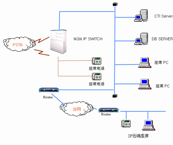 基于深圳某網(wǎng)絡(luò)購物呼叫中心的需求特點(diǎn),HXD IP Switch擁有自己的CTI、IVR、錄音等核心功能,這些核心功能都由HXD公司提供,支持IP分布式坐席。單板平滑升級擴(kuò)容,交換機(jī)擁有電信級別的穩(wěn)定性,基本業(yè)務(wù)托管功能,能在應(yīng)用程序的PC down機(jī)的情況下進(jìn)行基本業(yè)務(wù)功能(例如電話接聽等)。這一功能為企業(yè)的服務(wù)形象提供了有力保障。