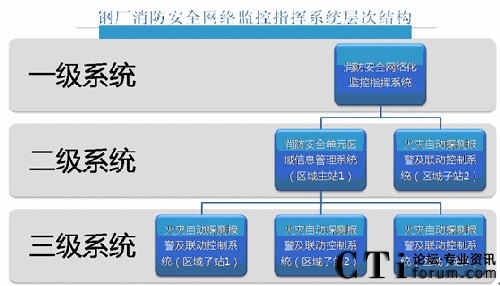 二級系統(tǒng)為“消防安全單元區(qū)域信息管理系統(tǒng)(區(qū)域主站)”,設(shè)在消防控制中心,是分廠級的消防安全信息管理中心,是一級和三級系統(tǒng)之間信息上傳下達(dá)的匯接點,其功能為:①及時上傳安全單元區(qū)域的火災(zāi)信息給消防安全監(jiān)控指揮中心;②對本單元區(qū)域的一級系統(tǒng)進(jìn)行實時監(jiān)控和管理;③與分廠級生產(chǎn)信息管理中心進(jìn)行信息交互和應(yīng)急聯(lián)動;④與其它消防安全單元區(qū)域信息管理系統(tǒng)進(jìn)行對等通訊聯(lián)絡(luò)。