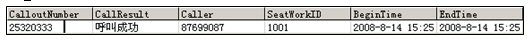可以通過預(yù)測(cè)撥號(hào)識(shí)別各類呼叫結(jié)果,如:忙音、空號(hào)、或無人接聽等,只將有效的通話轉(zhuǎn)接至業(yè)務(wù)人員,同時(shí)將呼叫結(jié)果寫入數(shù)據(jù)庫(kù)UT_IMCALL表(如下圖),