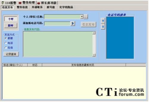 建立在“三臺合一指揮系統(tǒng)”的基礎(chǔ)上,在調(diào)度指令發(fā)送的同時(shí),建立和保持同一線指揮員和作戰(zhàn)人員的通信聯(lián)系,及時(shí)準(zhǔn)確地將變化情況向有關(guān)領(lǐng)導(dǎo)報(bào)告,確保領(lǐng)導(dǎo)在各種通信設(shè)備條件(手機(jī)、小靈通、辦公電話、家庭電話)下,在第一時(shí)間內(nèi)得到現(xiàn)場信息,極大地減輕了接警員的工作負(fù)擔(dān)。系統(tǒng)具備如下功能: