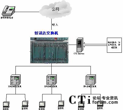 綜合接警平臺主要由hxd09可編程智能語音交換機和計算機網(wǎng)絡(luò)兩部分組成,交換機負責110、119、122報警電話的接入與分流及調(diào)度呼出等功能;計算機網(wǎng)絡(luò)則完成110、119、122報警信息的顯示、數(shù)據(jù)儲存、統(tǒng)計及信息查詢、發(fā)布功能。