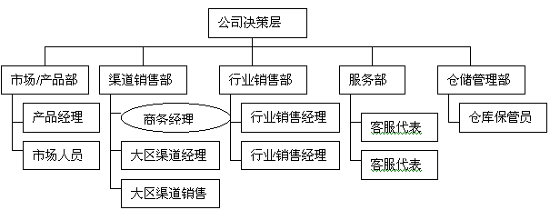 除分銷渠道管理之外,紫光網(wǎng)聯(lián)的前端管理組織機構(gòu)還包括市場/產(chǎn)品部、行業(yè)銷售部、服務部和倉儲管理部門。示意圖如下: