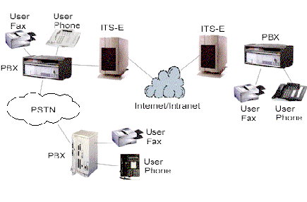 許多公司有多個辦公地點(diǎn),各地之間有著頻繁的通訊往來,電話和傳真。典型地,通訊涉及到公用交換電話網(wǎng)(PSTN)或PBX間的私人連接路線。Internet電話服務(wù)器(ITS-E)提供了另一選擇。基本原理是一處用戶撥打的電話經(jīng)本地PBX路由到本地ITS-E,本地ITS-E通過IP網(wǎng)絡(luò)送到目的地ITS-E,目的地ITS-E再將電話送到目的地PBX上,最后送到目的地電話或傳真機(jī)上。