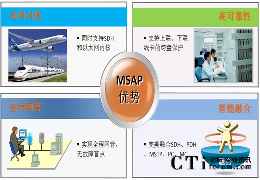 同時(shí),MSAP除了對傳統(tǒng)的TDM業(yè)務(wù)有很好的支撐之外,還利用其新增的IP內(nèi)核有效處理日益增多的純IP業(yè)務(wù)。