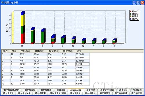 問題發(fā)現(xiàn):通過實(shí)時(shí)流量的統(tǒng)計(jì)分析,我們發(fā)現(xiàn)在信道6,AP數(shù)量10個(gè),目前某AP接入終端數(shù)為16,對(duì)某些終端的服務(wù)質(zhì)量急劇降低,導(dǎo)致錯(cuò)誤包過大。