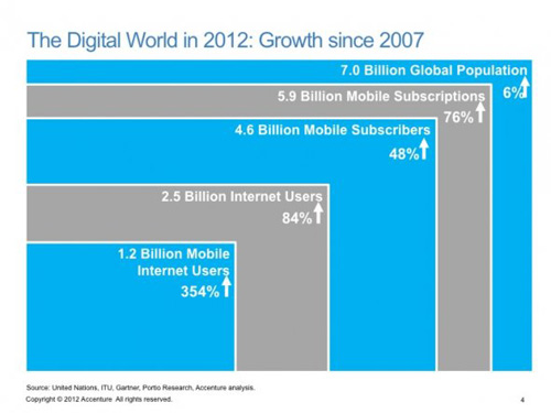 世界人口在過(guò)去5年里增長(zhǎng)了6%,而移動(dòng)用戶增幅超過(guò)了4倍