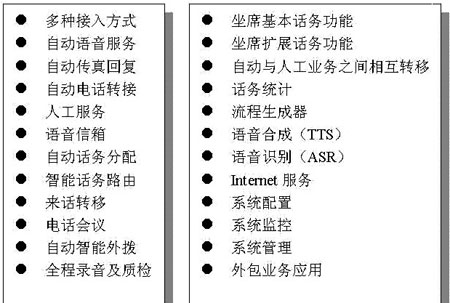 1. 接入及交換處理系統(tǒng)。此部分重點(diǎn)考慮用戶的呼叫接入和呼出、呼叫轉(zhuǎn)接處理需求,分析提供電話、傳真、信函、Web、E-mail、WAP、短信、視頻等方式的接入選擇?紤]分析用戶呼叫要求和數(shù)據(jù),將該數(shù)據(jù)傳遞給業(yè)務(wù)處理和業(yè)務(wù)管理系統(tǒng),同時(shí)接收業(yè)務(wù)處理和業(yè)務(wù)管理系統(tǒng)的交換請(qǐng)求,對(duì)各種電話交換資源、語音資源、傳真資源、坐席資源等進(jìn)行統(tǒng)一管理和調(diào)度分配,進(jìn)行呼叫的排隊(duì)和交換。它包括PBX/ACD (自動(dòng)呼叫分配)、IVR(交互語音應(yīng)答)、CTI、傳真系統(tǒng)、短信平臺(tái)、坐席軟電話、錄音、呼出系統(tǒng)、ICC(Internet呼叫中心)等子系統(tǒng)。