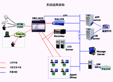 系統(tǒng)平臺主要包括接入設備、CTI、IVR、錄音、外撥、ICC、短信平臺及數(shù)據(jù)庫、存儲、應用軟件等硬件和軟件。
