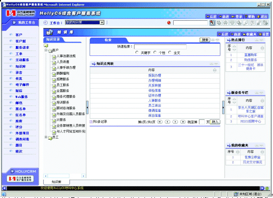 | 業(yè)務(wù)咨詢:快速查詢知識(shí)點(diǎn),定位相關(guān)業(yè)務(wù)信息解答客戶。支持“關(guān)鍵字”、“個(gè)性化編碼”、“全文檢索”、“熱點(diǎn)排行”、“個(gè)人收藏夾”等多種信息查詢方式。 |