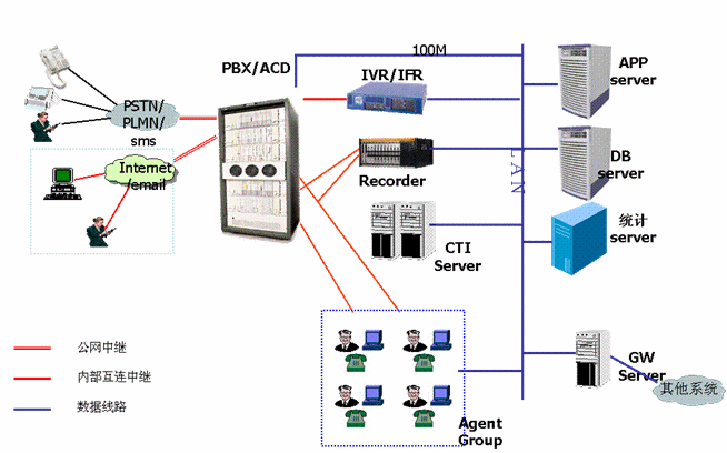 在建立呼叫中心前,廣州自來水公司只有覆蓋公司和各供水管理所的供水熱線系統(tǒng),該系統(tǒng)只有簡單的接入電話,沒有完善的呼叫中心功能,話務(wù)量承受能力小,接通率低,沒有統(tǒng)一的服務(wù)窗口和后臺,統(tǒng)計功能也只能靠手工實現(xiàn)。為了更好的為廣大市民服務(wù),廣州市自來水公司決定取消原先供水熱線工作模式,由公司成立客戶服務(wù)中心集中管理,建立基于互聯(lián)網(wǎng)的呼叫中心,負責全市范圍內(nèi)客戶服務(wù),使客戶能夠通過各種資訊工具如電話、傳真、電子郵件、短信等方式從自來水公司獲取用水信息,并能實現(xiàn)業(yè)務(wù)申請、投訴、業(yè)務(wù)受理、業(yè)務(wù)咨詢、業(yè)務(wù)查詢等,采用回撥技術(shù)實現(xiàn)客戶回復(fù)、客戶回訪、客戶調(diào)查等業(yè)務(wù)。