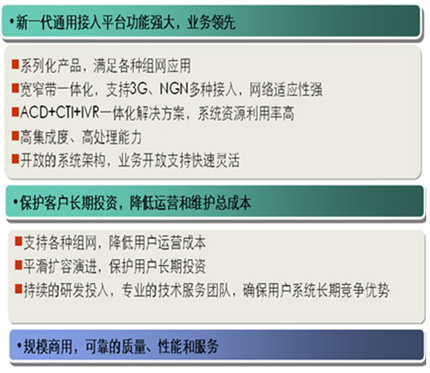 從服務(wù)內(nèi)容來看,聯(lián)絡(luò)中心建立了一個統(tǒng)一面向客戶的綜合性服務(wù)平臺,實(shí)現(xiàn)涵蓋公司各項(xiàng)主要產(chǎn)品和業(yè)務(wù)的專業(yè)信息咨詢與交易功能,并實(shí)現(xiàn)人工服務(wù)、業(yè)務(wù)咨詢、業(yè)務(wù)處理、投訴處理、建議受理、預(yù)約服務(wù)、客戶回訪等一體化的話務(wù)處理與管理,為客戶提供多樣化、全方位、個性化的接入方式與服務(wù)內(nèi)容。