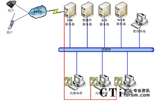 以數(shù)字中繼語(yǔ)音板卡為語(yǔ)音交換核心,建設(shè)呼叫中心系統(tǒng);適合中小型企業(yè),座席數(shù)量較少的客戶采用;