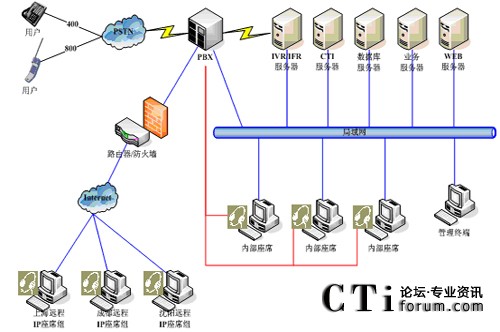 以IP為主要通信手段,利用Internet的開放性,建設(shè)IP分布式呼叫中心系統(tǒng);適合在全國(guó)有各種分布機(jī)構(gòu)的企業(yè)采用;