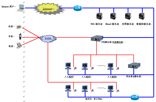 醫(yī)院客戶服務(wù)系統(tǒng)是一個集合電話語音、計(jì)算機(jī)網(wǎng)絡(luò)、數(shù)據(jù)庫等技術(shù)的綜合信息服務(wù)平臺,主要由自動語音應(yīng)答系統(tǒng)、人工座席和數(shù)據(jù)庫系統(tǒng)三部分組成。