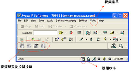 安裝了視頻集成的Avaya IP軟電話會提供相應的視頻配置菜單、視頻配置和控制案鈕及視頻狀態(tài)指示。集成視頻的IP軟電話之間可以直接進行點對點視頻和語音通訊,同時也可以和內(nèi)置多點功能的Polycom