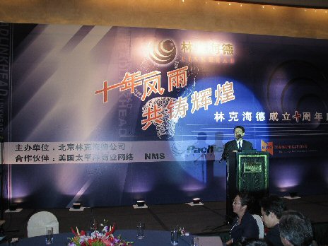 2004年6月10日,林克海德公司在昆侖飯店迎來了十年華誕,林克海德的新朋老友歡聚一堂,齊唱同一首歌。美國NMS總裁Bob,太平洋網絡總裁Tony都遠程趕來祝賀。在過去的十年中,林克海德見證了中國電信增值業(yè)務領域從無到有、從簡單的語音信箱到目前斑斕多彩的彩信業(yè)務的發(fā)展歷程,被譽為國內板卡市場的旗艦,F(xiàn)在隨著中國通信領域電信增值業(yè)務的發(fā)展,林克海德憑借語音增值業(yè)務方面的豐富經驗,成為業(yè)內知名的語音、傳真、數據等多媒體業(yè)務開發(fā)平臺的提供商和系統(tǒng)方案服務商,林克海德公司走進了新的語音時代!