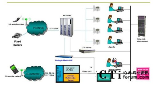 3G平臺既然可以起到這么關(guān)鍵的作用,那么如何實(shí)現(xiàn)這項(xiàng)服務(wù)呢?林克海德的產(chǎn)品可以幫助您完成平臺的搭建工作,基于背后Dialogic產(chǎn)品的全力支持,您可以實(shí)現(xiàn)web頁面到3G手機(jī)的視頻轉(zhuǎn)換,也可以與舊有的傳統(tǒng)呼叫中心(2G)互聯(lián)互通。您可以通過3G手機(jī)打到Dialogic視頻網(wǎng)關(guān),再通過3G