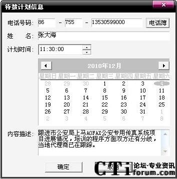 A8電腦傳真機(jī)的通話記錄和通話歷史讓您記住過去,來(lái)電彈屏和自動(dòng)答錄助您處理現(xiàn)在,待撥計(jì)劃和到時(shí)提醒則幫您安排未來(lái)。點(diǎn)擊電話商務(wù)通主界面中的待撥計(jì)劃按鈕,出現(xiàn)您未來(lái)將要撥出電話的日程安排,您可以對(duì)其進(jìn)行添加、編輯和刪除等操作。時(shí)間一到A8電腦傳真機(jī)會(huì)自動(dòng)彈屏提醒,待撥計(jì)劃中的電話一經(jīng)撥出,A8會(huì)自動(dòng)刪除該電話號(hào)碼。